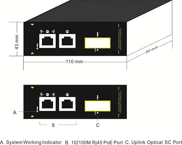 2 x 10/100M copper RJ-45 PoE ports, 1x 100M single mode single fiber SC Optical