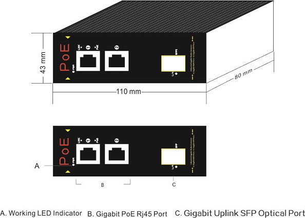 2x gigabit copper RJ45 PoE ports+1x gigabit SFP optical slots |