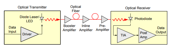 applications for optical fiber amplifiers: booster amplifier, in-line